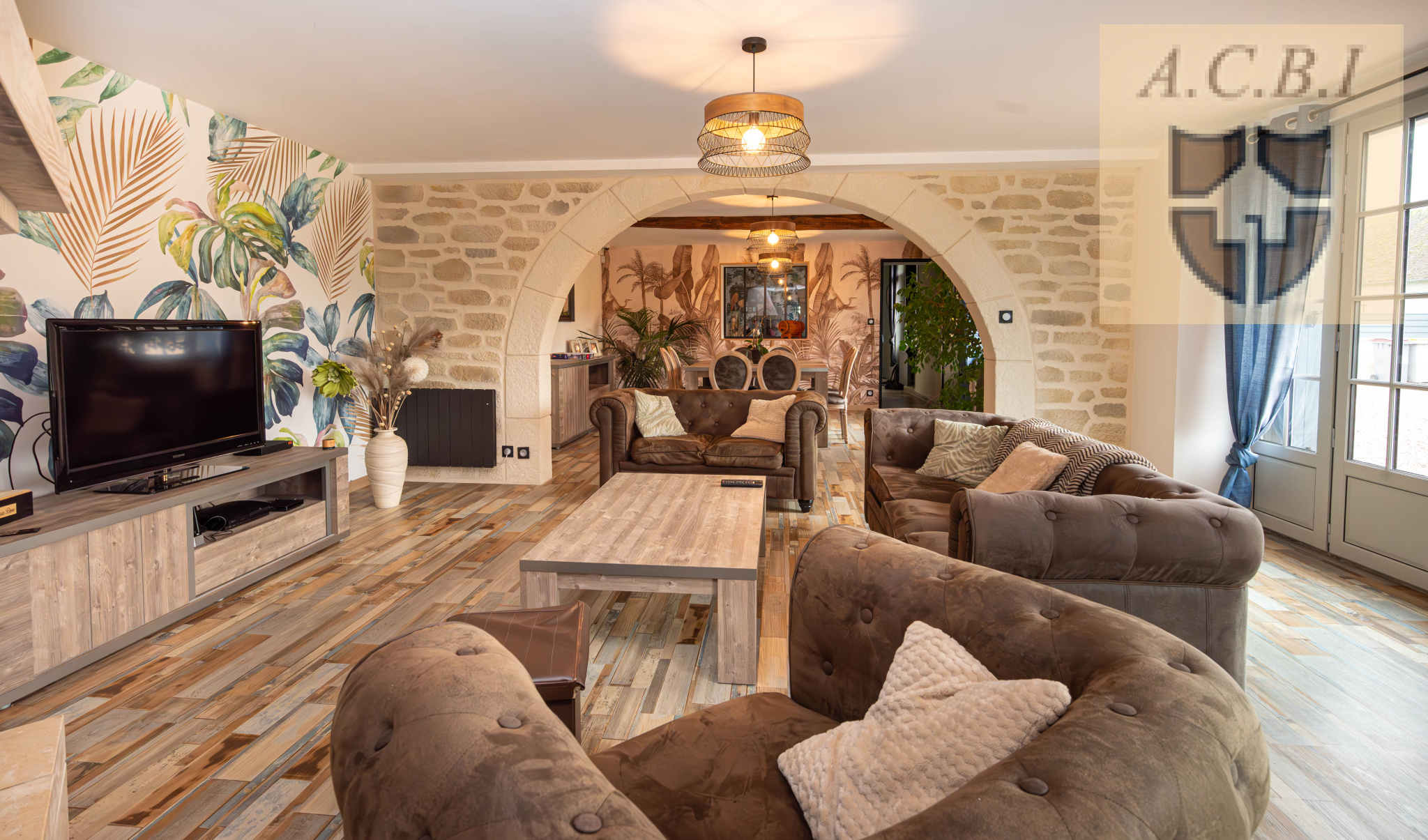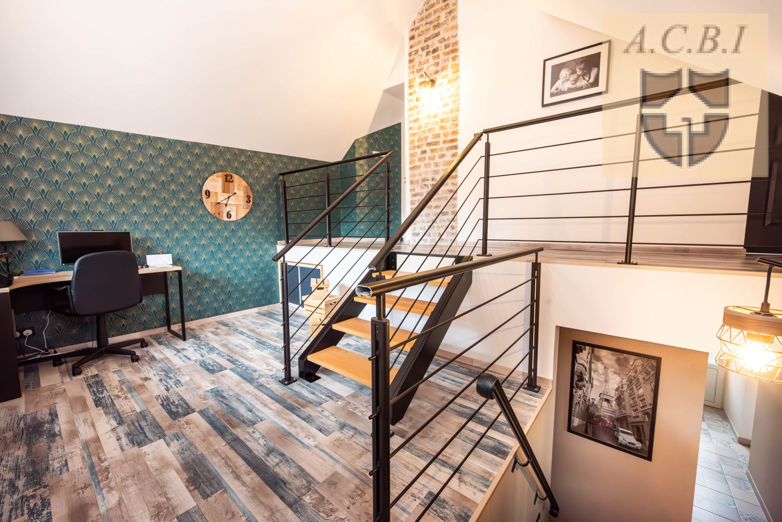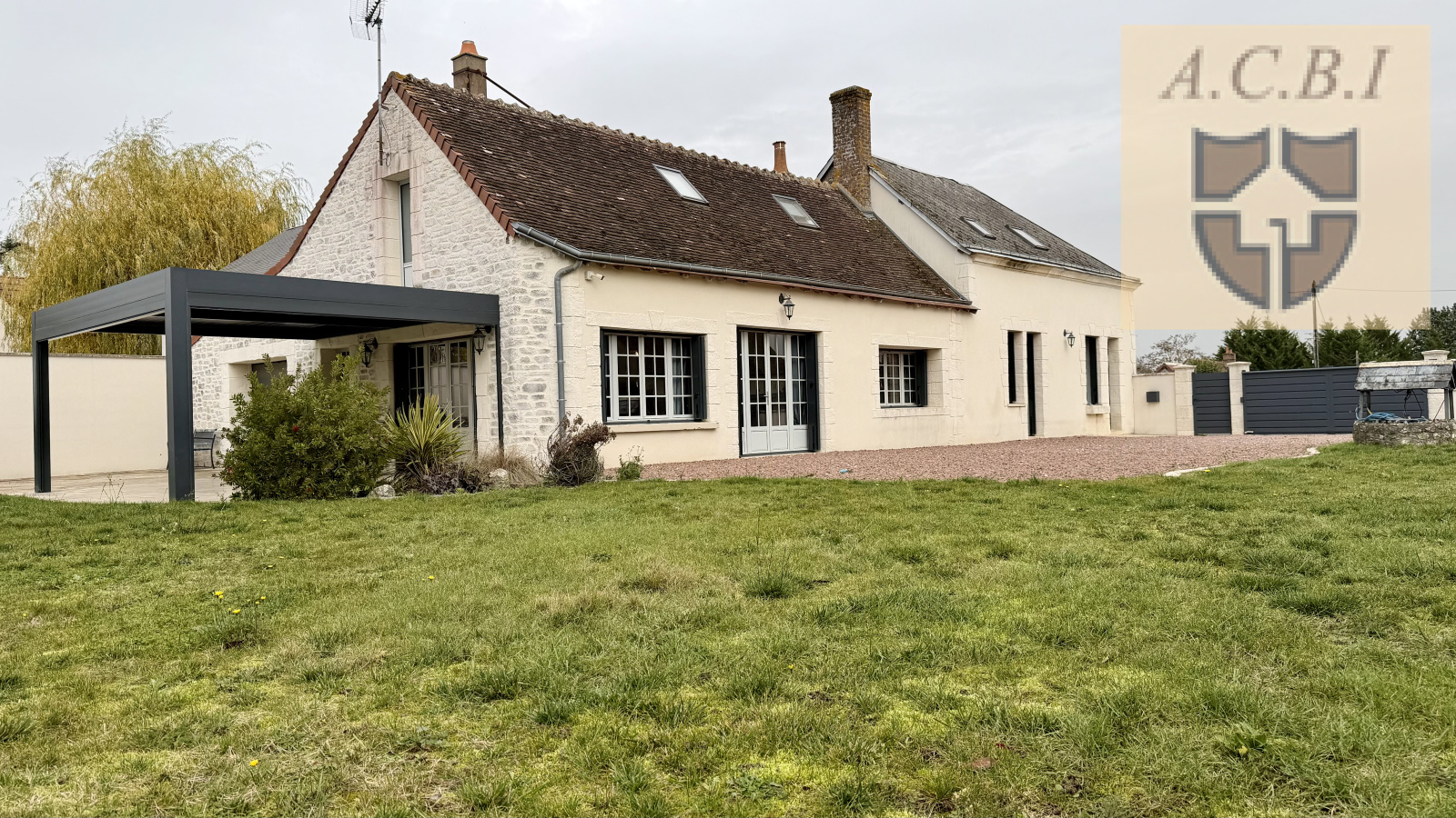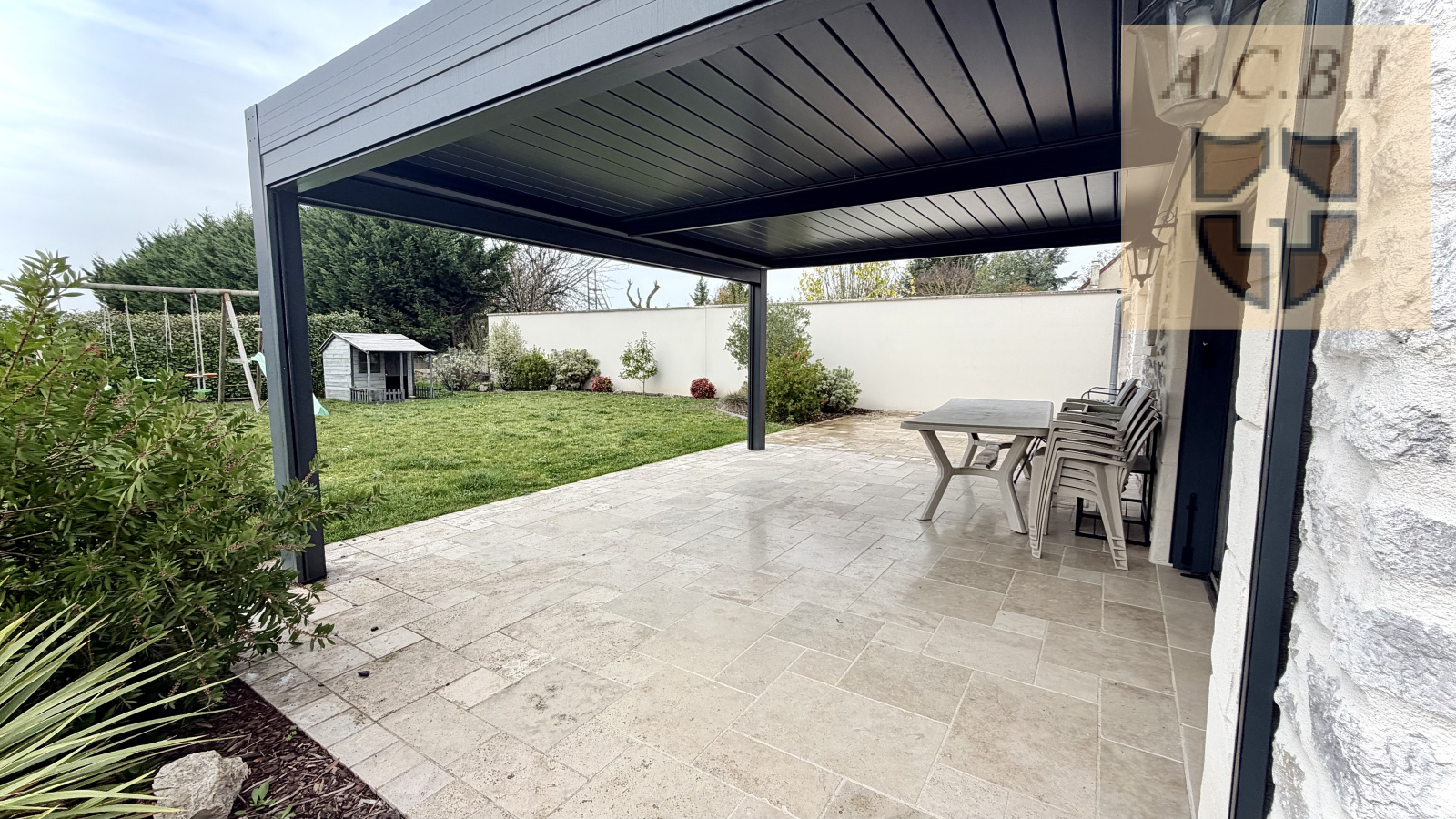 A l'étage: un palier mezzanine faisant office de bureau, 4chambres dont une avec partie bureau ou salle de jeux, une salle d'eau , wc. Une grande terrasse avec sa pergola bioclimatique vous permettra de profiter des exterieurs. Portail electrique , puits, tout à l'égout.Contacter CBLOT 0619208617 Agence ACBI