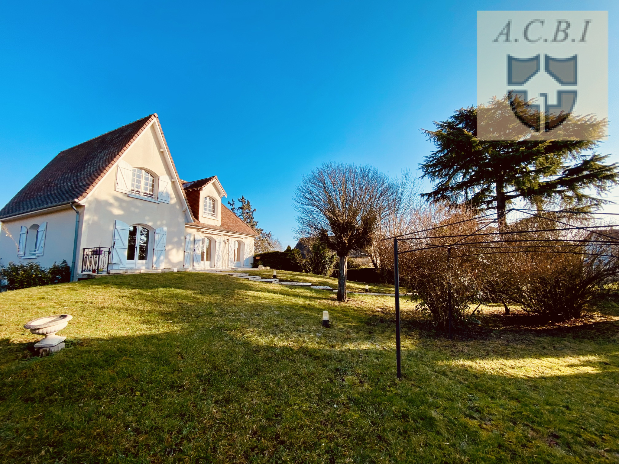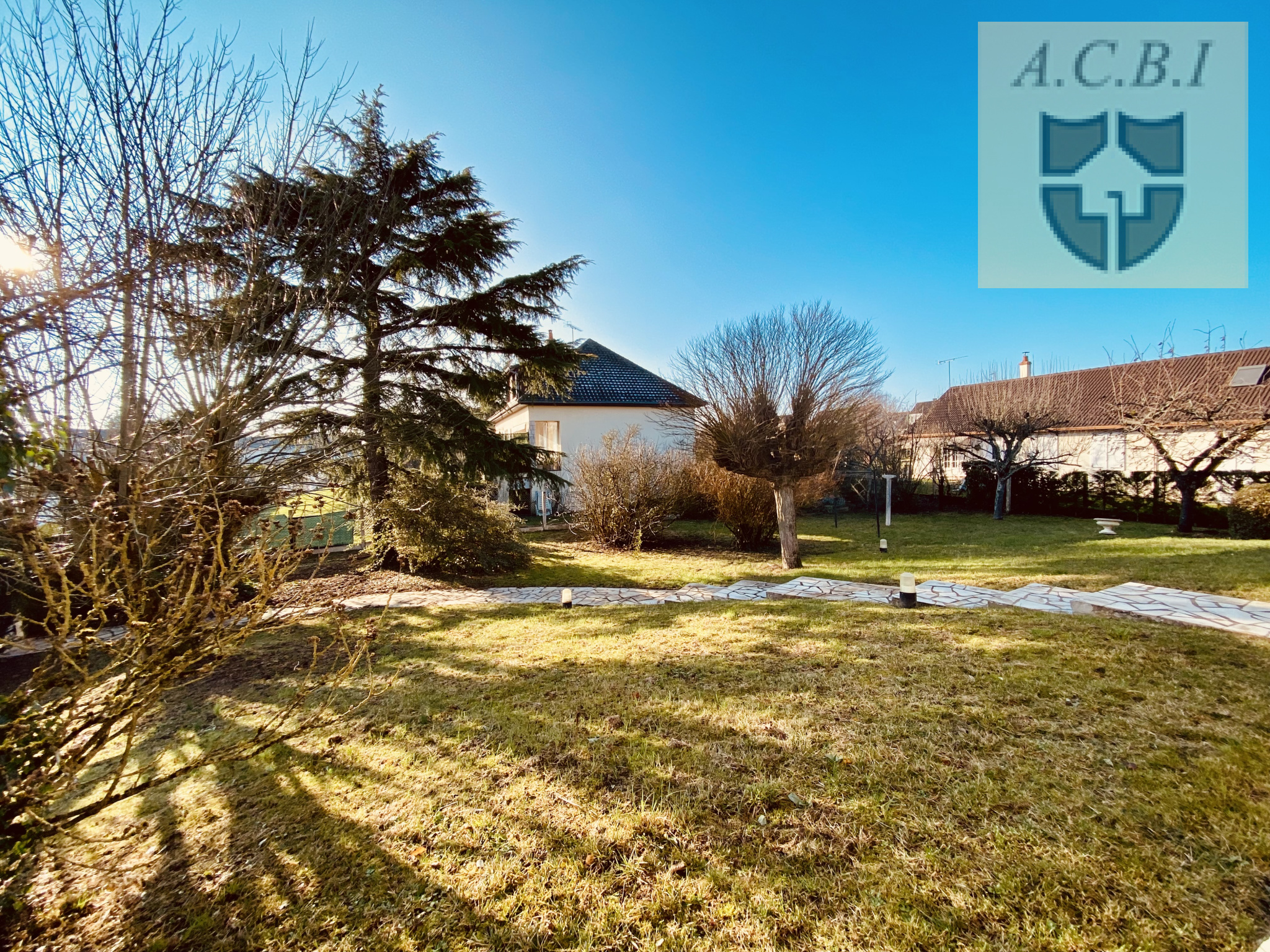 La maison un peu en hauteur s'ouvre sur un très joli jardin totalement clos et joliment arboré.