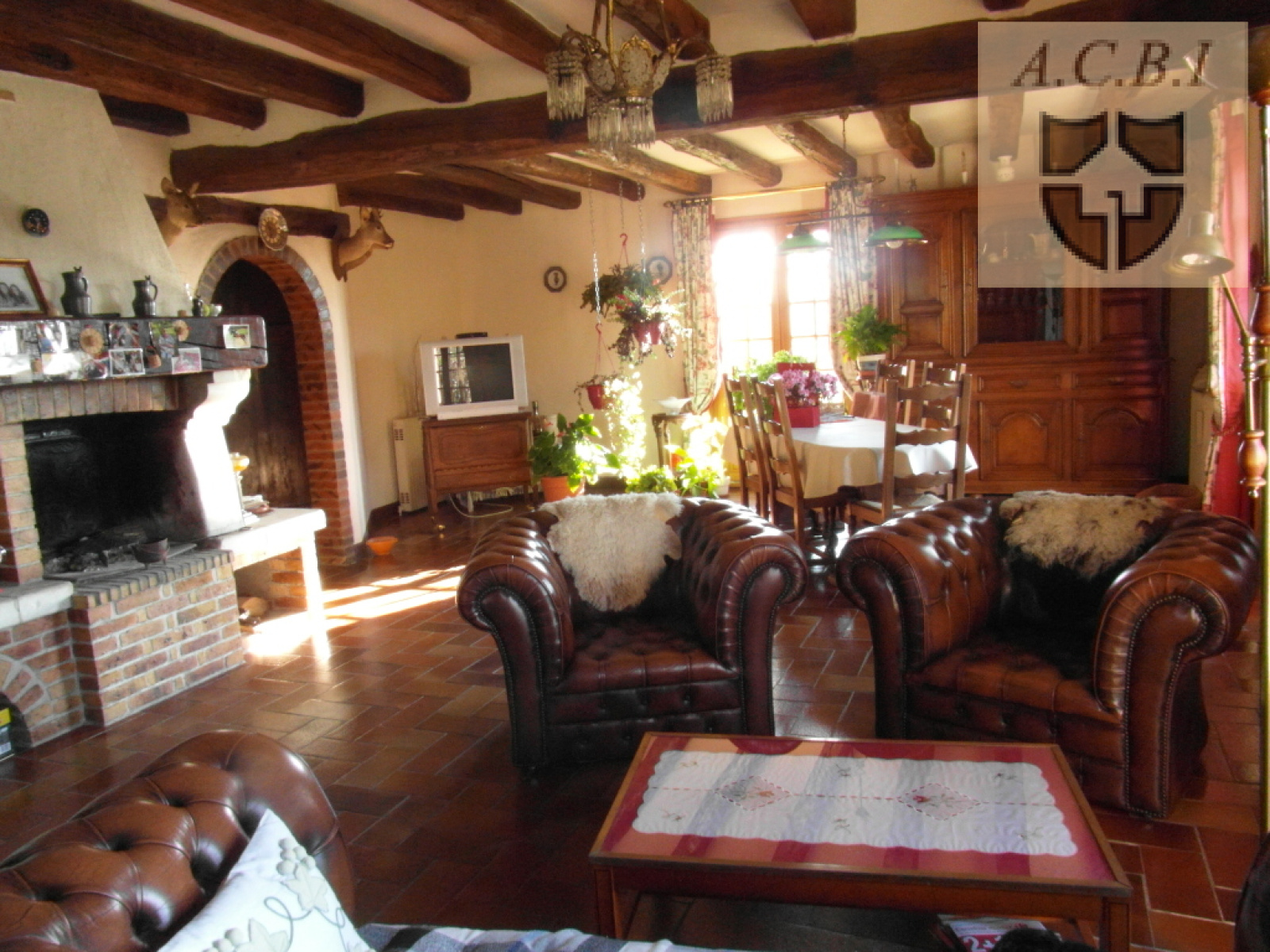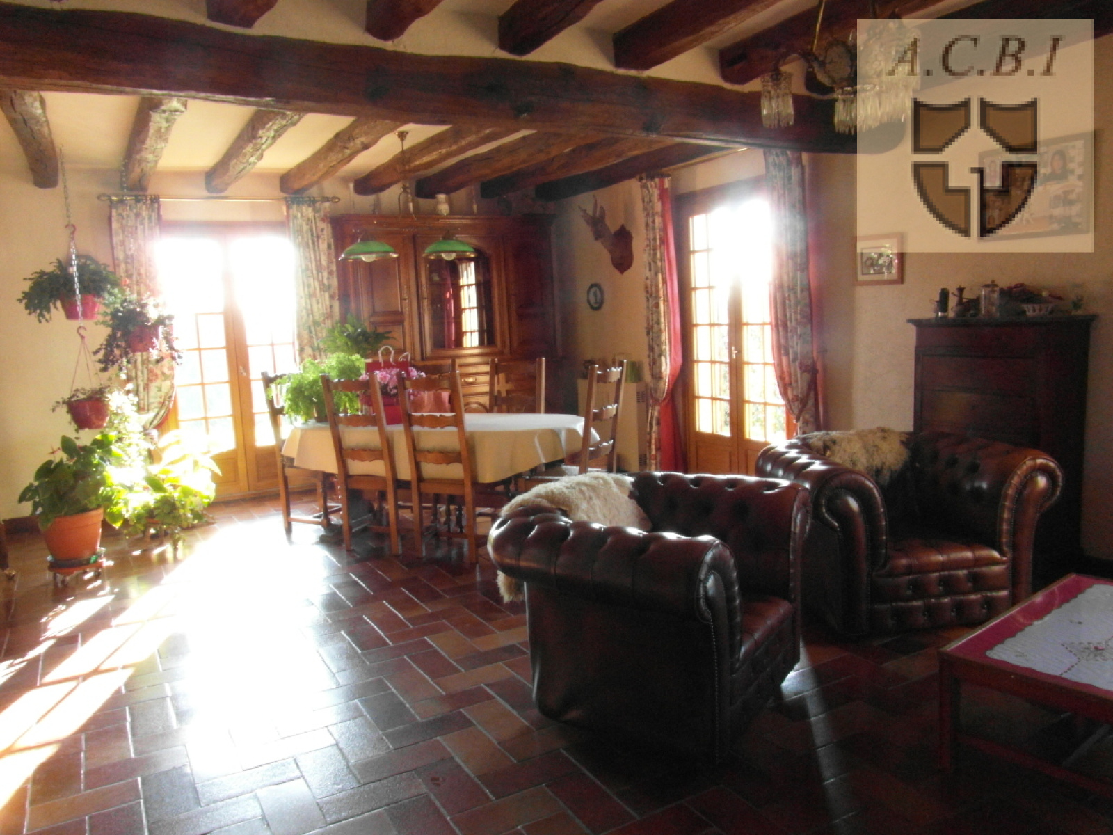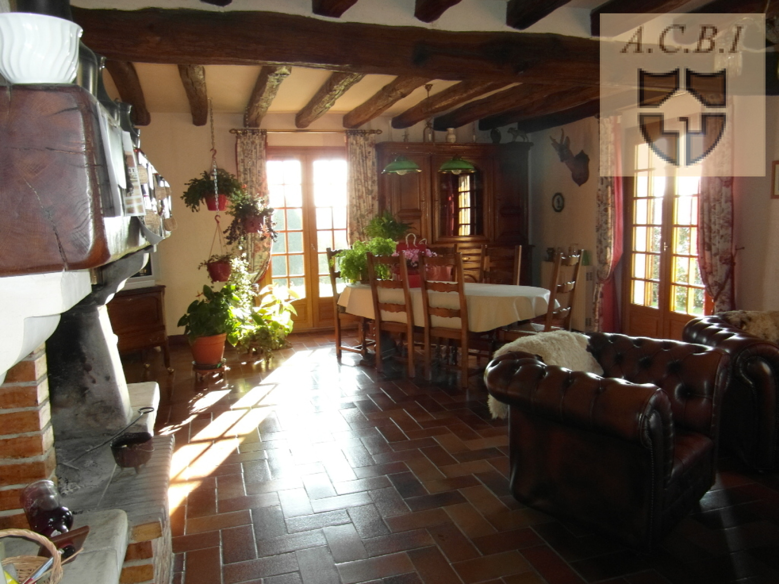 SItué dans un village, pavillon de charme ancien, avec poutres apparentes et de plain pied offre : entrée, cuisine aménagée et équipée, salon avec cheminée, salle à manger, sdb avec douche, wc, 4 chambres dont 2 avec placards. au sous sol : garage pour 3 voitures, cave, atelier, 3 box, 1 pièce avec fenêtre. Grenier aménageable, abris de jardin. Le tout sur un terrain de 2330 m2.